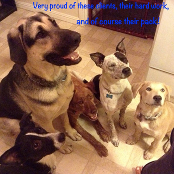 We pressed on through the fall with a private trainer and saw a little improvement. Then, we began your class Dec 1. I know Cody has a long way to go to achieve anywhere near the obedience that your pack exhibits and we are working hard to follow up on our lessons every day (a few minutes working in this lesson or that as part of a daily routine still provides progress; just not at the rate of regular workouts like we should be doing).